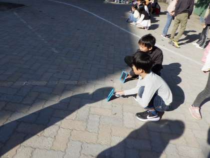 少し肌寒い中での自由散策でしたが、子供たちは笑顔でとても美味しそうにお弁当とアイスクリームを食べていました。 5年生 岩井移動教室3日目(3)