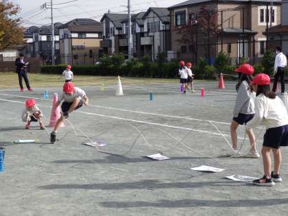 グループごとに、川跳び遊び、ゴム跳び遊び、ケンパー跳び遊びなどを組み合わせてジャンピングランドを作りました。 自分たちの作ったジャンピングランドをお友達に紹介する際には、遊び方を上手に伝えていました。同じ跳び方でもグループによってコースに工夫があり、楽しくたっぷり運動することができました。 11月12日(水)今日の給食
