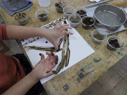 ・西湖豆腐 ・ビーフンソテー ・くだもの(りんご) ・牛乳 西湖豆腐(しーほーどうふ)は、中国の西湖という湖の近くの地域でよく作られる豆腐料理です。西湖豆腐はトマトが入るのが特徴で、見た目はマーボー豆腐と似ていますが辛味がなくトマトの酸味でさっぱりとしています。 4年生 図工「土で描く」