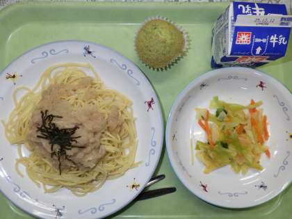 ・大豆と鶏肉のトマト煮 ・切干大根とツナのサラダ ・牛乳 今日のサラダには、野菜の他にツナを入れました。ツナは、マグロやカツオの加工品でDHAやEPAが豊富に含まれていて、血液をサラサラにしてくれたり、生活習慣病の予防にもなったりします。サラダや炒め物などいろいろな料理にそのまま使うことができる便利な食材です。 1年生 国語「しらせたいな、見せたいな」