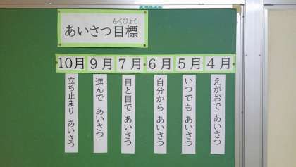 10月の目標は「立ち止まり あいさつ」です。登校時は、チャイムと同時に一斉に校舎に入りますので、なかなか立ち止まってあいさつをすることは難しいのですが、中には、校長や担任の前で、足をそろえて挨拶をしてくれる子がいてとてもうれしい気持ちになります。挨拶は相手の存在を認め、相手に対して心を開く第一歩です。改まった挨拶についても身に付けてほしいと思います。 10月6日(月)今日の給食