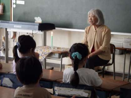 写真は、ねりまお話の会の皆さんによるストーリーテリングの様子です。子供たちは、ろうそくに火がともされると、お話の世界に引き込まれていきました。 10月7日(火)今日の給食