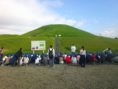 まず最初の目的地は観音山古墳です。子供たちは前方後円墳の大きさに驚き、また、石室の中にも入ることができ、古墳時代にタイムスリップしたようでした。 10月15日(水)今日の給食