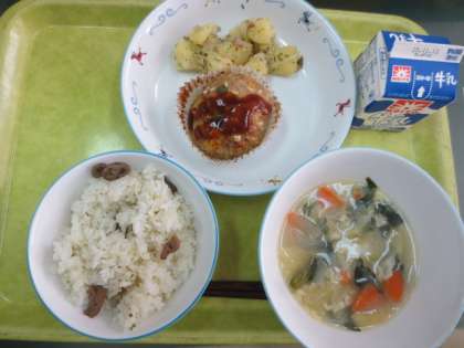 栗ご飯 牛乳 魚のもみじ焼き 油揚げと野菜のおひたし けんちん汁 今日の給食は十三夜に合わせた給食です。 十三夜とは、十五夜についで一年で月がきれいに見える日とされていて、お月見をする風習があるそうです。 十三夜には、栗や豆が収穫される時期であることから栗名月または豆名月とも呼ばれています。 『栗ご飯』は秋の収穫に感謝の気持ちをこめたメニューです。季節を感じながら味わっていただきましょう! |