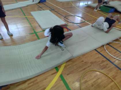 グループでどんな技に挑戦するか、みんなでどんなことに取り組んでいきたいのかを話し合い、場を設定して学習に取り組んでいます。