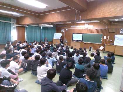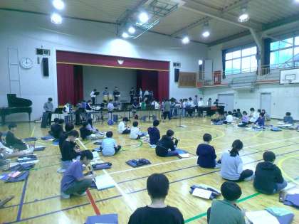 今年度の展覧会では6年生がミニ学芸員を務めます。作品の紹介や制作方法などをきちんと説明できるよう、今回のお話を生かして準備していきます。 10/27 6年生 音楽学年合同練習