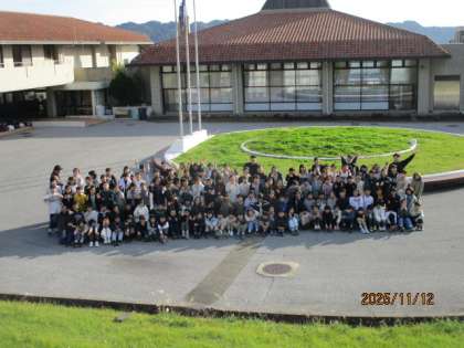 1日めの様子です。晴れ渡る青空の中、たくさんの方々に見送られて出発しました。保護者の皆様には、早朝から、またあたたかいメッセージをありがとうございました。 日本寺では、高い場所からの景色に感激し、大仏の前でおいしいお弁当を食べました。 宿舎のベルデ岩井では、友達との生活にわくわくしながら1日目をスタート。 3日間、子供たちが大きく成長することを願っています。 10/29 3年生 外国語 「世界のことばで楽しもう!!」