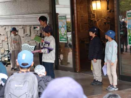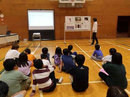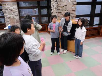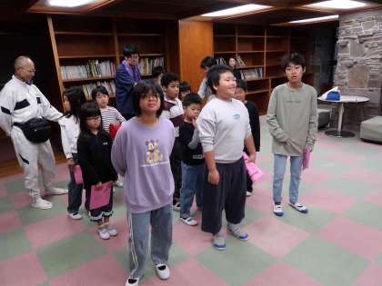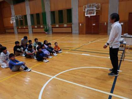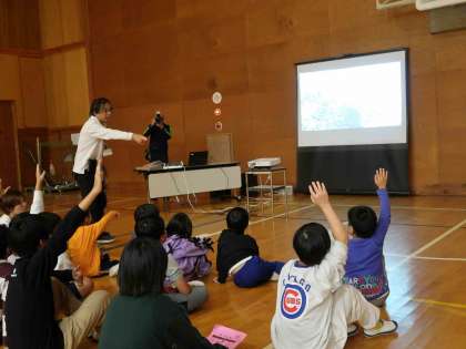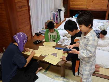 二日目の夜は、ベルデの森に住む様々な動物たちの映像を見て、その生活を教えてもらいました。子供たちは、目を輝かせて映像を見て手を挙げて答えていました。熊、ニホンカモシカ、キツネ、タヌキ、イノシシ、シカ、フクロウなど、様々な動物のことを知りました。もう動物博士になれました。