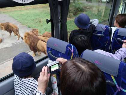 群馬サファリパークのふれあいゾーンでは、草食動物の他にチータやホワイトタイガーなどの肉食動物も間近で見ることができました。ヒョウは、下から見ることもできました。大迫力でした。色々な動物の角に触ってその違いに驚きました。図鑑などで見ていた動物を目の前で見られて大興奮でした。
