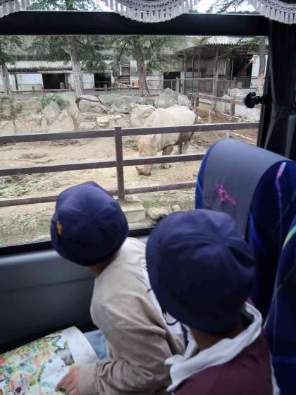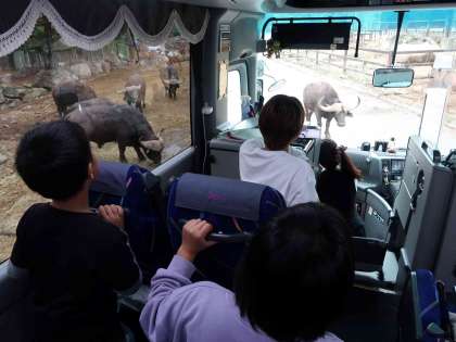 軽井沢宿泊学習二日目の午前中は、群馬サファリパーク見学です。バスの中から野生に近い状態でいるトラやゾウなどを見ました。目の前で見る動物に大興奮でした。