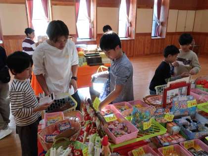 画像は、おみやげを買っているところの様子です。お家の人には何がいいかな?自分には何にしようかな?軽井沢宿泊学習の記念になる物は何かな?お金は足りるかな?などなど、いろいろ考えながら購入しています。電卓片手に計算しながらおみやげを選んでいます。