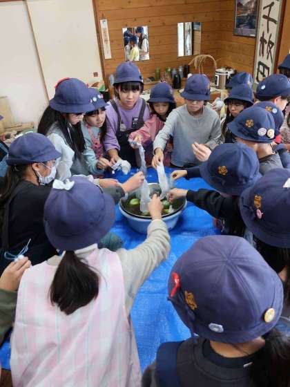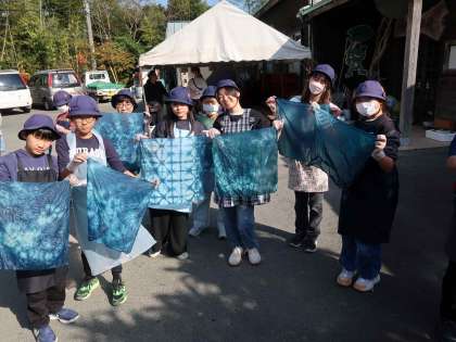 染める液をみんなで作り、出来上がりの柄を4つから選び、完成作品をイメージしながらハンカチをしばりました。世界に一つしかない藍染のハンカチが出来上がりました。いつまでも大切に使うために5つの約束を教えてもらいました。