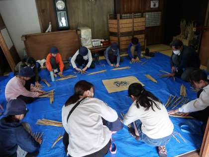 大山千枚田で育ったわらを使って亀を作りました。丁寧に心を込めて制作しました。丁度よい締め具合が難しく大きくならないように注意しながら制作しました。