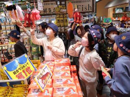 二日目の午後は、ザフィッシングでのお土産購入です。みんなの目が輝いています。家族のために選んでいる家族思いのお友達がとても多かったです。お友達とおそろいの物を買っている子もいました。よい思い出の品が購入できたようです。