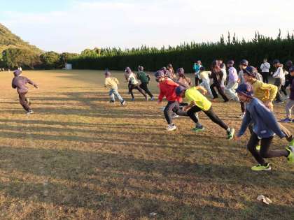 二日目の午後の後半は、校庭でのレクです。けいどろとどんじゃんを行いました。全員が思いっきり走って走って走り回りました。全力でレクをする子供たちが素敵です。