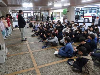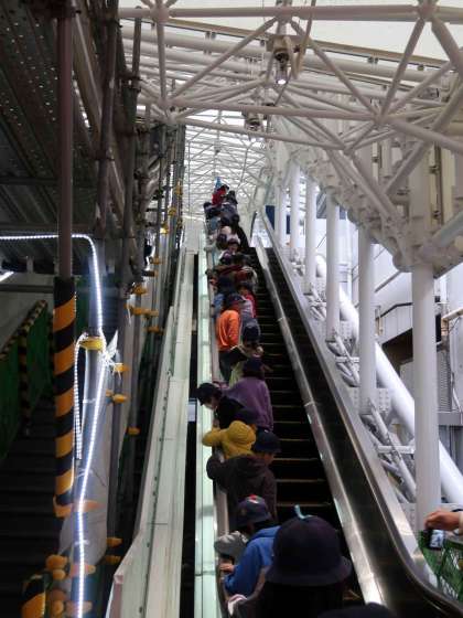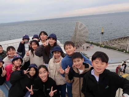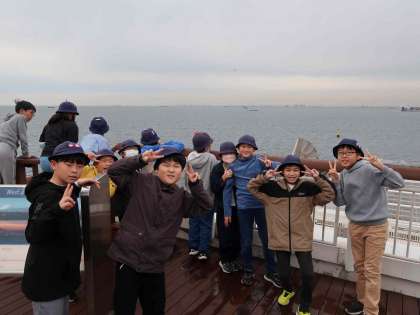 最終日は、小雨が時々ふる空模様で昼食をうみほたるでとりました。昼食後は、うみほたる内を散策しました。展望デッキでは、海底トンネルを掘るためのシールドマシーンも見ることができました。富士山や横浜、羽田空港など、色々と見ることができました。予定にはなかったのですが、貴重な体験になりました。うみほたるを出発した後は、学校への帰路につきます。