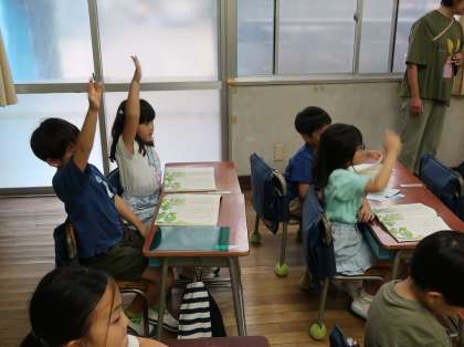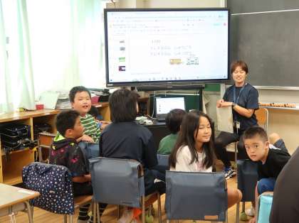 5組さんは、10月に宿泊学習に行きます。5組の教室では、準備が始まっていました。先生からどんな日程なのかなど、お話を聞いていました。みんな笑顔です。本番が楽しみなようです。