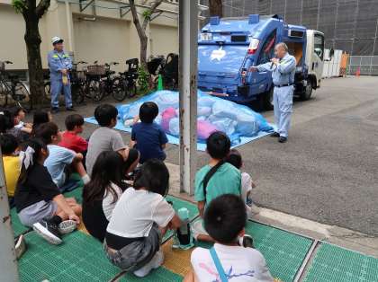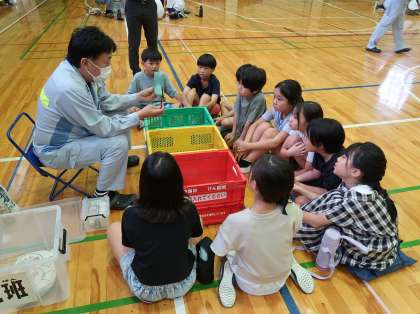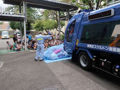 清掃工場の方を講師にお迎えしてゴミの学習をしました。ゴミ収集車の説明を聞いて、安全に回収するための工夫やゴミを出す自分たちの責任も感じました。体育館では、グループで分別についてのお話を聞きました。もし清掃工場の方々の仕事がなかったら私たちの今の暮らしは守られず、将来もたいへんなことになってしまうと子供たちは感じていました。私たち一人一人が責任をもって未来のためにゴミを減らし正しく捨てる必要があると痛感しました。