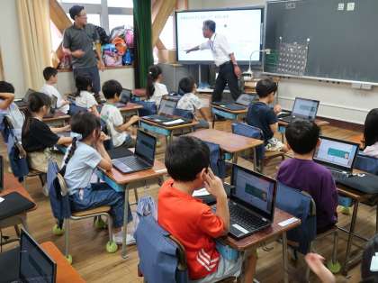 1年生がタブレットの操作の仕方をはじめて学習しました。立ち上げ方からクラスルームの入り方、画像の取り方などを教えてもらいました。有効な学習ツールとして活用していきます。子供たちは覚えるのが早いです。