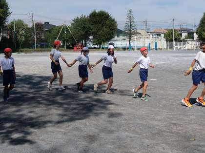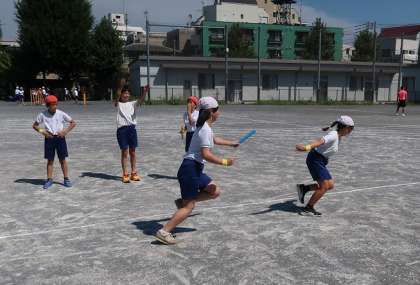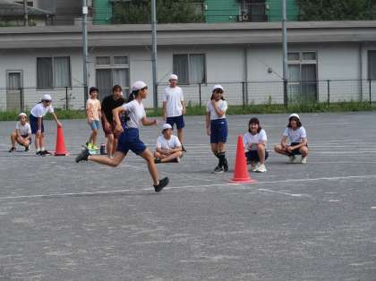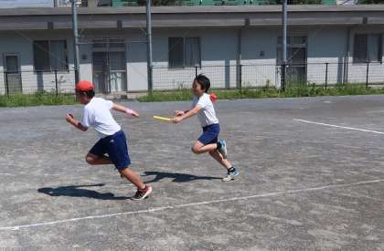 2学期になり、体育では体育学習発表会で行う種目の学習が始まっています。5年生は、競技で行うリレーの勝敗に大きくかかわるバトンパスの練習をしていました。チームで、よりよいバトンパスになるように走る順番を決めたりスタートするタイミングを探したりしていました。本番での子供たちの活躍が楽しみです。