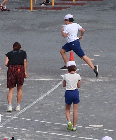 6年生は、トラックの半周のタイムを計測していました。体育学習発表会の競技種目であるリレーのチーム分けのためでしょうか。6年生でも体育学習発表会の準備や学習が始まっています。