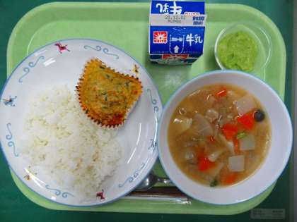ねりまるjキャベツのスタミナ回鍋肉丼・中華コーンスープ 11月11日の献立
