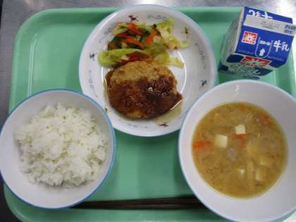 ★ポテトコロッケ ★彩り野菜のさっぱり和え ★味噌汁 ★牛乳 今日は給食室で手作りした「ポテトコロッケ」です。コロッケのもとになったのは、フランス料理の「クロケット」と言われています。ホワイトソースやじゃがいもの入ったクリームコロッケのような料理を庶民の味に近づけて作られたのが「ポテトコロッケ」です。どのクラスもよく食べていました。 12月4日(木)の給食