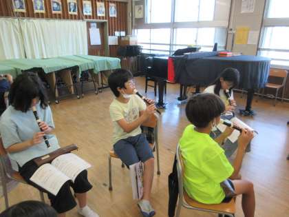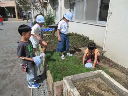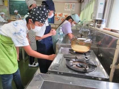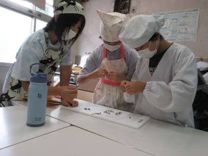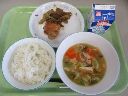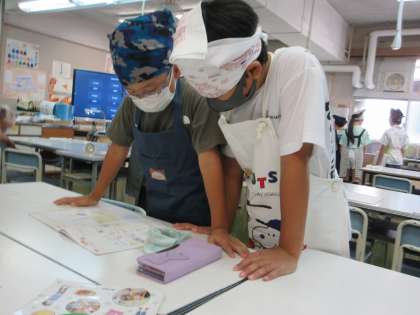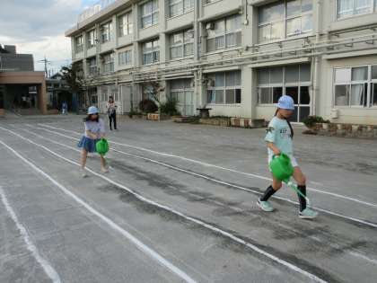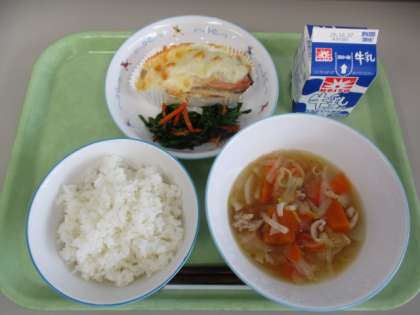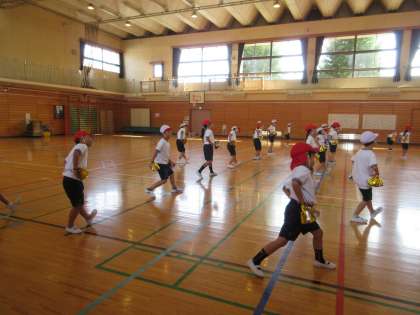 9/30(火)遠足 1年・2年 その3![]() ![]() ![]() ![]() ![]() ![]() 少し暑くなりましたが、最後までみんなよく頑張りました。 9/30(火)遠足 1年・2年 その2![]() ![]() ![]() ![]() ![]() ![]() 4つのチェックポイントを回り、課題をクリアすると文字が書いてあるシールがもらえます。4つのシールを集めると「きょ」「う」「りょ」「く」、「協力」の文字になりました。2年生がリーダーになり1年生を引率しました。 9/30(火)遠足 1年・2年 その1![]() ![]() ![]() ![]() ![]() ![]() 出発時には、上級生たちからの見送りに、手を振って応える姿がありました。 駅までの歩き方も離れず、広がらず立派でした。 ホームでもコンパクトにまとまり、周りに迷惑を掛けないように静かに待つことができました。 9/30(火)の給食![]() ![]() ・ごはん ・鮭のクリーミー焼き ・ほうれん草のおひたし ・かぼちゃの彩りスープ 6年生が考えた「秋がいっぱい元気メニュー」です。旬の食材をたくさん使った献立を考えてくれました。 魚のクリーミー焼きは、旬のサンマを使う内容でしたが、生産量不足により同じく旬の鮭に変更させてもらいました。 かぼちゃの彩りスープは、かぼちゃや大根、ねぎを使いました。旬の食材がたっぷり入った彩りもきれいな給食です。 9/30(火)秋晴れの下で校庭遊び![]() ![]() ![]() ![]() ![]() ![]() 9/29(月)校庭ライン引き![]() ![]() ![]() ![]() ![]() ![]() 5年生の女子が「何か手伝うことがありますか?」と自主的に声を掛けてくれて、ラインの上にジョウロで水を掛けてくれました。 9/29(月)の給食![]() ![]() ・2色ごまわかめご飯 ・鶏肉とコーンの揚げ煮 ・じゃこサラダ 白と黒、2色のごまを使ったわかめご飯です。 鶏肉と野菜を揚げて甘辛いタレと和えた揚げ煮はご飯が進みます。 サラダには、カルシウムが豊富に含まれているちりめんじゃこを加えました。 9/29(月)おいしいご飯とみそ汁を作ろう 5年![]() ![]() ![]() ![]() ![]() ![]() 「何もしないを作らない」「米を研ぐ、切るは全員行う」が基本の約束でした。 ガスコンロに火をつけ、火の番をしながら炊けていく様子を見たり、だしの煮干しの頭を取ったりと全員が関わりながら取り組みました。 9/29(月)体育発表会に向けて 6年![]() ![]() ![]() ![]() ![]() ![]() 9/29(月)体育発表会に向けて 1年![]() ![]() ![]() ![]() ![]() ![]() 9/29(月)トントンくぎ打ち コロコロビー玉 3年![]() ![]() ![]() ![]() ![]() ![]() 9/26(金)の給食![]() ![]() ・秋色ご飯 ・ししゃもの磯辺揚げ ・具だくさんのすまし汁 ・りんご 気温は高いですが、季節はもう秋です。今日は栗やきのこなど秋の食材を使った混ぜご飯です。ししゃもは青のりをまぶしてからっと食べやすく揚げました。くだものは旬のりんごです。シャキシャキでみずみずしく暑い日にぴったりでした。 9/26(金)カノン 6年![]() ![]() ![]() ![]() ![]() ![]() 9/26(金)そろばん教室 4年![]() ![]() ![]() ![]() ![]() ![]() 9/26(金)児童集会![]() ![]() ![]() ![]() ![]() ![]() 9/25(木)の給食![]() ![]() ・豚肉と野菜のうどん ・さつまあげ(さつまいもの天ぷら) ・アロエの果肉入りぶどうゼリー 今日は6年2組の児童が考えた「秋をたんのう、栄養満点メニュー」です。 旬のさつまいもを使った甘くておいしい天ぷらです。うどんのスープともよく合います。 デザートのゼリーは、アロエとぶどうジュースでつくりました。旬の食材を使った彩りがきれいな献立です。 9/25(木)体育発表会に向けて 6年![]() ![]() ![]() ![]() ![]() ![]() 今日は、組み体操の大技の練習に取り組んでいました。事前に練習をしていたグループがお手本を示し、その後グループごとに教員が補助に入りながら練習しました。みんなが力を合わせ頑張っていました。 9/25(木)校庭整備![]() ![]() ![]() ![]() ![]() ![]() 石だけでなく落ち葉も拾い、短い時間の中で校庭がきれいになりました。 9/24(水)の給食![]() ![]() ・ごはん ・鶏の照り焼き・ ・野菜のきんぴら ・ちゃんこ風汁 少し涼しくなってきました。朝晩と昼間の気温差があるので体調を崩さないように気を付けましょう。バランスよく食べて、体温を上げると健康にすごせます。気温差に負けない丈夫な体をつくるためにも好き嫌いをせずに食べるようにしましょう。 9/22(月)休み時間 2年![]() ![]() ![]() ![]() ![]() ![]() 中休みや昼休みには、草むらや藤棚の下の芝生のところで虫探しをしていました。少し涼しくなり、虫の活動も活発になり、探しやすくなるかもしれませんね。 |