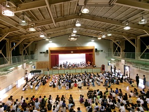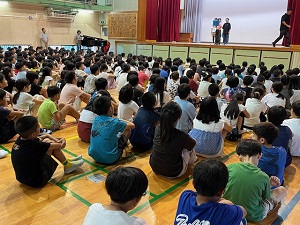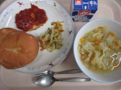9月10日(水)の給食![]() ポークビーンズは、名前(なまえ)のとおりに豚肉(ぶたにく)と豆(まめ)が入った(はいった)トマト味(あじ)の煮込み(にこみ)料理(りょうり)です。今回(こんかい)は、茹でた(ゆでた)大豆(だいず)をみじん切り(みじんぎり)にして、細かく(こまかく)してみました。 レインボーじゃんけん集会(児童集会)![]() ![]() ![]() 学年を問わずみんなで楽しく取り組むことができ、体育館は子供たちの笑顔であふれていました。集会委員の皆さん、ありがとうございました。 4年白子川体験学習![]() 白子川源流・水辺の会の方からお話を聞いたり、生き物を探したりしました。今後は、白子川源流・水辺の会に来ていただき、さらに詳しいお話を聞かせてもらったり、総合の時間で調べ学習を行ったりします。これからの活動も、とても楽しみです。 9月9日(火)の給食![]() 9月(9がつ)9日(ここのか)は3月(3がつ)3日(みっか)の『桃(もも)の節句(せっく)』・5月(5がつ)5日(いつか)の『端午(たんご)の節句(せっく)』と同じ(おなじ)、五(ご)節句(せっく)の一つ(ひとつ)で『菊(きく)の節句(せっく)』とよばれています。難しい(むずかしい)言葉(ことば)では『重陽(ちょうよう)の節句(せっく)』といいます。『菊(きく)の節句(せっく)』にちなんで菊(きく)の花(はな)にみたてた菊花(きっか)しゅうまいという、しゅうまいの皮(かわ)を細(ほそ)切り(ぎり)にして、肉(にく)に付けて(つけて)蒸した(むした)、しゅうまいをつくりました。 9月8日(月)の給食![]() 豚(ぶた)丼(どん)に使われて(つかわれて)いる豚肉(ぶたにく)は体(からだ)をつくるもとになるタンパク質(しつ)や疲れた(つかれた)体(からだ)を回復(かいふく)させるビタミンB(B)群(ぐん)がとても多く(おおく)含まれて(ふくまれて)います。 9月5日(金)の給食![]() 今日(きょう)のきんぴらはメジャーなゴボウとにんじん、こんにゃくですが、レンコンや大根(だいこん)、ジャガイモやたけのこ、ピーマンなどでも作る(つくる)ことができます。 9月4日(木)の給食![]() 今日(きょう)のパンは、パインアップルが生地(きじ)に練り込まれて(ねりこまれて)作られて(つくられて)います。チキンのトマトソースがけは人気(にんき)メニューです。サラダもスープもしっかり食べましょう(たべましょう)。 9月3日(水)の給食![]() 今日(きょう)の豆腐(とうふ)の旨煮(うまに)丼(どん)は、豆腐(とうふ)がたくさん使われて(つかわれて)います。豆腐(とうふ)は大豆(だいず)を絞り(しぼり)、にがりを加えて(くわえて)作ります(つくります)。大豆(だいず)は「畑(はたけ)のお肉(にく)」と呼ばれる(よばれる)ほど、タンパク質(しつ)が豊富(ほうふ)です。 9月2日(火)の給食![]() 2学期(がっき)最初(さいしょ)の給食(きゅうしょく)は人気(にんき)のあるカレーライスです。給食室(きゅうしょくしつ)でカレーをつくる時(とき)は、大きな(おおきな)釜(かま)を2つ使って(つかって)カレーの辛さ(からさ)をわけて作って(つくって)います。1学期(がっき)は1年生(1ねんせい)のために甘め(あまめ)のカレーをつくっています。2学期(がっき)に入る(はいる)と少し(すこし)辛さ(からさ)を調整(ちょうせい)できるカレー粉(こ)の量(りょう)を増やして(ふやして)いきます。毎回(まいかい)、同じ(おなじ)量(りょう)のカレー粉(こ)ではなく野菜(やさい)からでる甘味(あまみ)でカレー粉(こ)の量(りょう)もかわります。 7月17日(木)の給食![]() 今日(きょう)で1学期(がっき)最後(さいご)の給食(きゅうしょく)になります。1(1)学期(がっき)最後(さいご)の給食(きゅうしょく)はカレーライスです。 今日(きょう)のカレーは夏(なつ)野菜(やさい)カレーです。いつもと違う(ちがう)具(ぐ)としてなす・ズッキーニ・トマト・コーンの夏(なつ)野菜(やさい)をいれました。サイダーポンチは冷えた(ひえた)サイダーをフルーツ白玉(しらたま)にかけて食べて(たべて)ください。しっかり食べて(たべて)、元気(げんき)いっぱいに夏休み(なつやすみ)をすごして、2学期(がっき)の給食(きゅうしょく)もたのしみにしていてください。 7月16日(水)の給食![]() 今日(きょう)の給食(きゅうしょく)に登場(とうじょう)する「刻み(きざみ)昆布(こんぶ)」とは、昆布(こんぶ)を細(ほそ)切り(ぎり)にしたものです。刻み(きざみ)昆布(こんぶ)は、今日(きょう)のようにあえものやサラダにしてサッパリと食べて(たべて)も美味しい(おいしい)ですが、油(あぶら)揚げ(あげ)などと合わせて(あわせて)炒め(いため)煮(に)にしても美味しい(おいしい)です。 7月15日(火)の給食![]() 今日(きょう)の『鮭(さけ)ザンギ』は、北海道(ほっかいどう)の郷土(きょうど)料理(りょうり)『ザンギ』からの登場(とうじょう)です。ザンギは北海道(ほっかいどう)では唐(から)揚げ(あげ)のことを意味(いみ)するそうです。給食(きゅうしょく)では鮭(さけ)を使った(つかった)鮭(さけ)ザンギにしました。 7月14日(月)の給食![]() 今日(きょう)のバーガーはセルフです。自分(じぶん)でお肉(おにく)をパンにはさんで食べて(たべて)ください。一緒(いっしょ)にサ