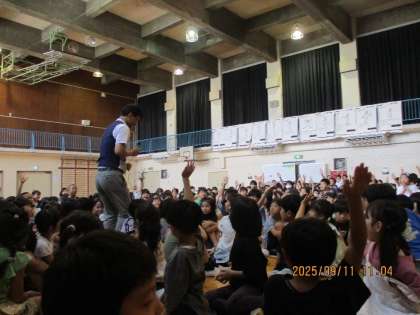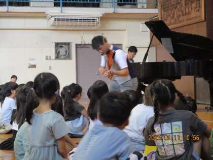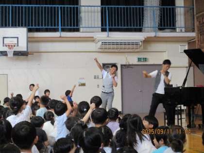 ![]() ![]() ![]() ![]() 9月26日(金)の給食![]() ![]() ・牛乳 ・山賊焼き ・きのこスープ ・ぶどう食べ比べ(巨峰・シャインマスカット) 9月25日(木)の給食![]() ![]() ・牛乳 ・ぶりの照り焼き ・練馬味噌の味噌汁 ・ひじきの煮物 9月24日(水)の給食![]() ![]() ・牛乳 ・ABCスープ ・ピーチゼリー 9月19日(金)の給食![]() ![]() ・牛乳 ・ビーフンスープ ・チーズポテト 9月18日(木)の給食![]() ![]() ・牛乳 ・鯖の塩麹焼き ・里芋の味噌汁 ・大根ときゅうりのピリ辛漬け 9月17日(水)の給食![]() ![]() ・牛乳 ・海藻サラダ ・かすてら 9月16日(火)の給食![]() ![]() ・牛乳 ・ビーンズコロッケ ・即席漬け ・あおさの味噌汁 1〜4年 音楽鑑賞教室![]() ![]() ![]() ![]() ![]() ![]() Everly(エバリー)のお二人によるバイオリンとピアノの演奏を鑑賞しました。 バイオリンの楽器体験に積極的に手をあげたり、校歌をみんなで歌ったり、楽しい時間を過ごしました。ディズニーメドレー等子どもたちが知っている曲もでてきて、生き生きとした表情で聴く姿が見られました。 プロの生の音楽を聴く貴重な機会となり、音楽会に向けて、伝え合うことのすばらしさを体験することができました。 |