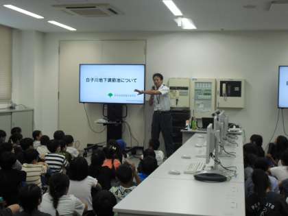 練馬区役所土木部の方々をお招きし、水害対策工事についてのお話を伺いました。区内で行われている工事の目的や仕組みについて、写真や図を交えて分かりやすく説明していただきました。子どもたちは「街を守るためにすぐ近くでこんな工夫がされているんだ」と驚きながら熱心に聞いていました。社会科で学んでいる水害についての学習が、地域の実際の取り組みとつながり、防災を自分ごととして考える貴重な機会となりました。
