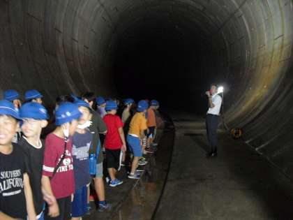 社会科で水害について学習を進めています。その学びを深めるために白子川調節池群の見学に出かけました。実際に現地を訪れることで、川の増水時にどのように水をためて街を守っているのかを具体的に理解することができました。普段は目にすることのない施設の役割や仕組みに触れ、子どもたちは「こんな工夫がされているんだ」と驚きや発見を重ねていました。学習と現地体験がつながり、防災についてより身近に考える貴重な機会となりました。