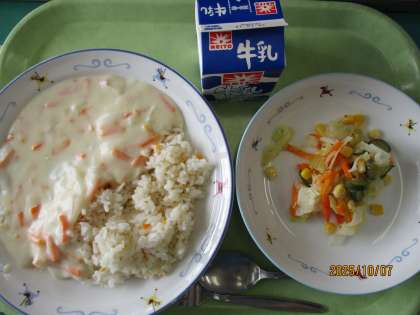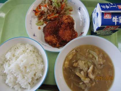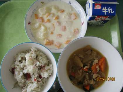 ![]() ![]() 10/8 国語の時間より![]() ![]() ![]() ![]() 「うみのかくれんぼ よんでたしかめよう」の学習です。 興味をもった生き物の隠れ方について調べてわかったことを友達に説明をしていました。 聞いている子供たちは、友達の発表の「いいな」「まねしたいな」と思ったところを書き留めていました。 今日の給食 10月9日(木)![]() ![]() ・牛乳 ・チキンタレかつ ・おかかあえ ・みそ汁 です。 今日は、「運動会がんばれ」ということで、子供たちに人気のタレかつにしました。甘辛のタレにたっぷりつかったカツは、ごはんとよく合っておいしかったです。どの学年も練習頑張っています。運動会までもうひと頑張りです。 今日の給食 10月8日(水)![]() ![]() ・牛乳 ・豚肉と冬瓜の味噌炒め ・フルーツヨーグルト です。 梅は疲労回復や食欲増進などによい食品の一つです。ごはんにカリカリ梅としらすを混ぜたごはんにしました。さっぱりしておいしかったです。冬瓜の味噌炒めも「もっと食べたかった」との感想がありました。フルーツヨーグルトはくだものの甘みとヨーグルトの酸味のバランスがよくおいしかったです。 今日の給食 10月7日(火)![]() ![]() ・牛乳 ・キャベツのマスタードサラダ です。 みじん切りのにんじんを炊き込んだごはんに、鶏肉や玉ねぎなどを炒めてホワイトソースで和えたクリームをかけていただきました。マスタードサラダもさっぱりしておいしかったです。今週は、運動会の練習が続きますので、食べやすい献立にしています。しっかり食べて元気に過ごしてほしいと思っています。 |