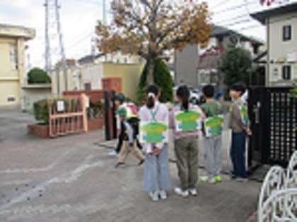 互いに挨拶を交わす活動を通して挨拶の清々しさや温かさに気付かせ、豊かな人間関係を育むこと、大泉学園緑小学校を「あいさついっぱいの学校にしよう。」という意識を高めさせることをねらいとし、あいさつ運動を10月から1月に行います。
