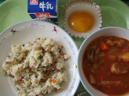 1年生の「音のカーニバル」では、多彩な楽器の音色を楽しみながら拍の流れにのって元気に演奏することができました。 今日の給食 11月7日(金)