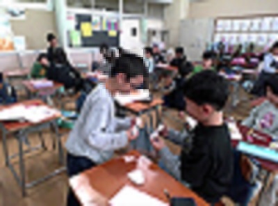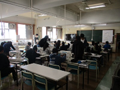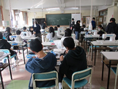 11月12日(水)、6年1組の家庭科の時間です。トートバックを作っています。