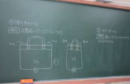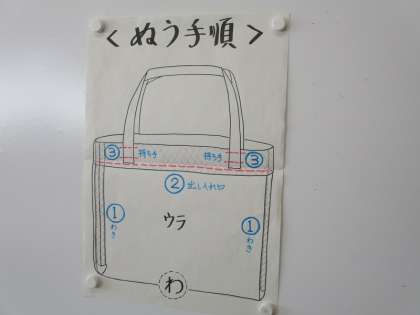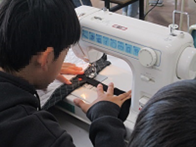 今日は、「持ち手を付ける」「かざりを付ける」作業です。 ミシンのセッティングや操作を慎重にすすめていました。