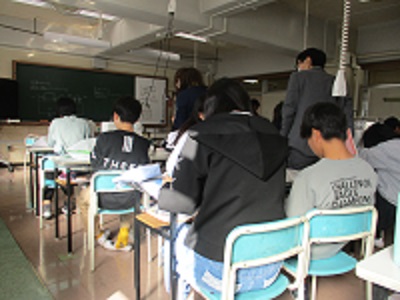 (写真上)感じたことを言葉の調子や響きに表れるように詠んでいきました。 (写真下)選んだ句に描かれた風景を文で説明したり、絵に表したりしていきました。