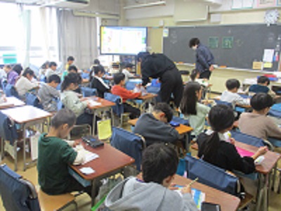 11月14日(金)4年2組の国語の時間です。「短歌・俳句に親しもう」と学習していました。