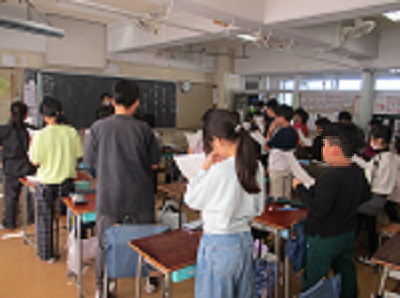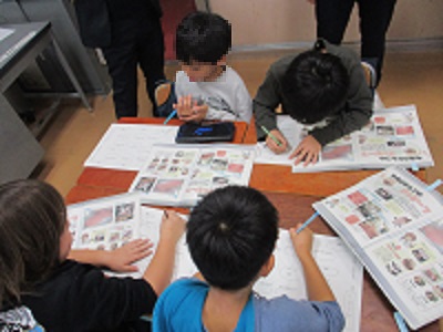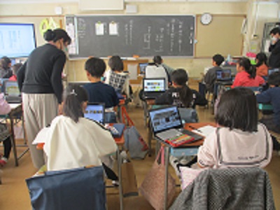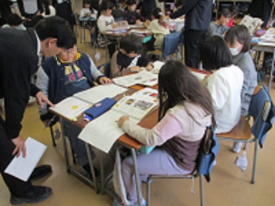 今年度の研究主題は、「児童が生き生きと学びに向かう授業づくり 〜選択を取り入れた授業を通して〜」です。 今回は、3年生の提案です。3年3組が国語科「れいの書かれ方に気を付けて読み、それをいかして書こう」の学習を行いました。今日は、選んだ食べ物について、どんな姿に変わっているか、姿を変えるためにどんな工夫をしているか、図書資料から読み取っていきました。 みんな意欲をもって学習をすすめていました。