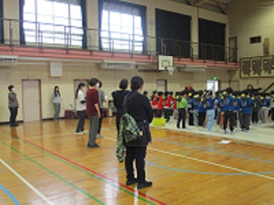 (写真上)はじまりのあいさつをしています。頼もしさを感じます。 (写真下)先生方、支援員の先生たちも、練習の成果を出し切れるよう、見守っています。