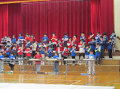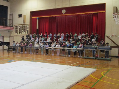 練習の成果が出ています。 (写真上)リコーダー奏より (写真下)合奏より
