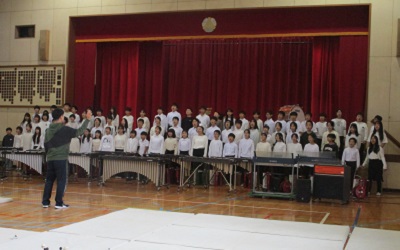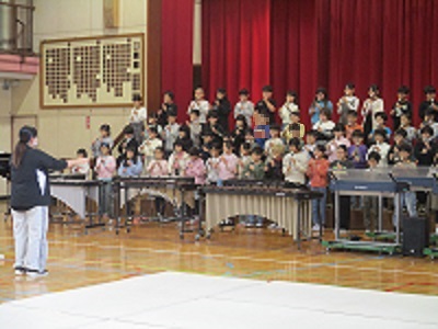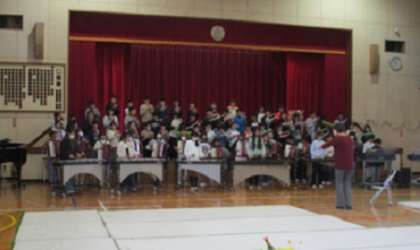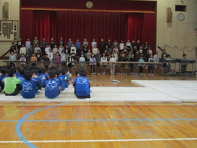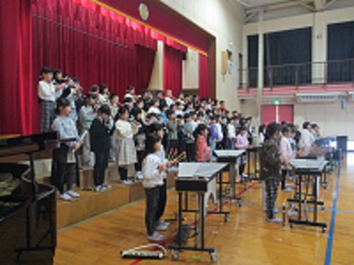 歌声を響かせることにこだわって、練習を積み重ねてきた4年生です。 (写真上)合唱より (写真下)合唱奏より