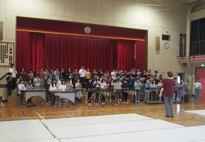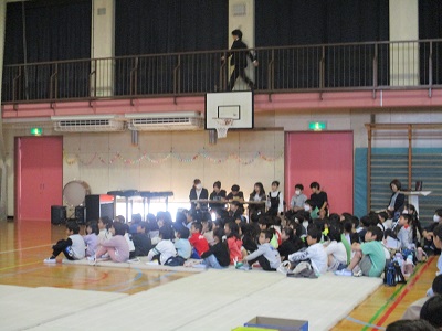 1年生が演奏を聞きたいと来ています。 立派な姿で臨んでいます。 (写真上)鍵盤ハーモニカ奏より (写真下)合唱奏より