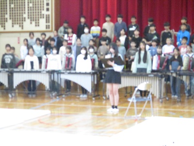 6年間の音楽の学習の集大成となるような姿を目指して練習に励んできました。 (写真上)合奏より (写真下)児童代表の言葉より