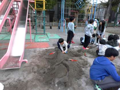 今回は流れる水のはたらきが大きくなるのはどんな場所かを実験で調べました。 「カーブの方が流れが早くて、外側の方がたくさん削れている!」など実験を通してたくさんの学びがありました。 楽しそうに生き生きと学ぶ様子が見られました。
