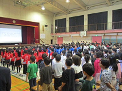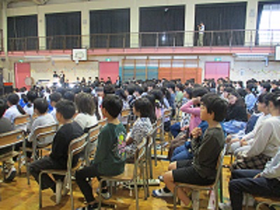 音楽会では、授業で培ってきた力をもとに、学年で協力して楽曲を創り上げる喜びを体感するとともに、学校全体で自他の頑張りを認め、高め合ってきた成果を見ることができる、すばらしい会です。 (写真上)司会を務める 代表委員 (写真中)鑑賞中の子供たち (写真下)全校合唱「MuSIC」子供たちのはずむ声が美しく響いていました。