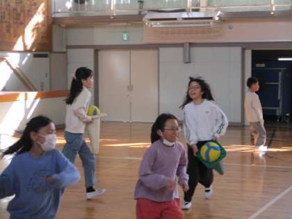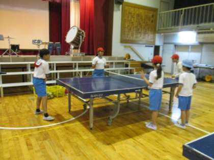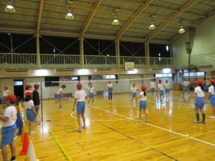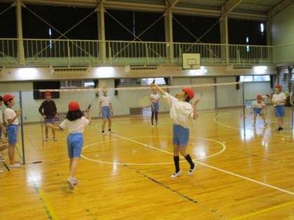 ・あじの唐揚げピリ辛ソース ・糸寒天のゴマ酢和え ・明日葉麺入りすまし汁 ・牛乳 今日の給食は、八丈島でとれる食材を使った献立です。八丈島は練馬区から約290km離れている島ですが、東京都に属しています。和え物に使っている糸寒天とすまし汁に使っている明日葉麺は、八丈島で作られたものです。明日葉は、夕方に葉を摘んでも翌朝には新しい葉が出るというほど生命力が強く、成長が早い植物です。給食では、その明日葉が入っている麺を汁物に入れました。島の食材を味わってみてください。 バドミントンクラブの活動