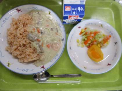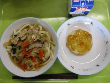 ・コールスローサラダ ・くだもの(柿) ・牛乳 秋のくだものの代表とも言える柿は、日本で古くから親しまれてきました。柿の種類は、大きく「甘柿」と「渋柿」に分けられ、全国各地で様々な品種が栽培されています。柿は、くだものの中でも栄養価が高く、ビタミンCがたくさん入っているので、風邪をひきにくい体をつくってくれます。苦手な子も一口は食べてほしいです。 11月20日(木) 今日の給食