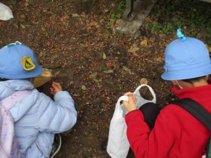 石神井公園に到着すると、1・2年生は一度離れ、1年生はどんぐりを広い、2年生はグループに分かれて1年生とのグループ活動に備えました。そして再度合流。グループで協力してミッションを乗り越えます。葉っぱじゃんけんなど、集めた葉っぱを使って楽しく取り組みました。 11月25日(火) 今日の給食